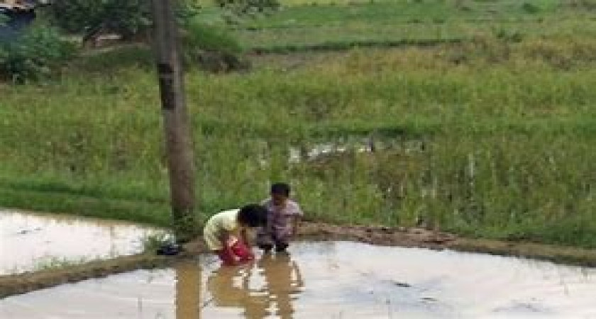 Dan ternyata ketika saya melihat-lihat di sekitar sawah, hanya terdapat satu kollam yang kecil, tetapi cukup dalam.